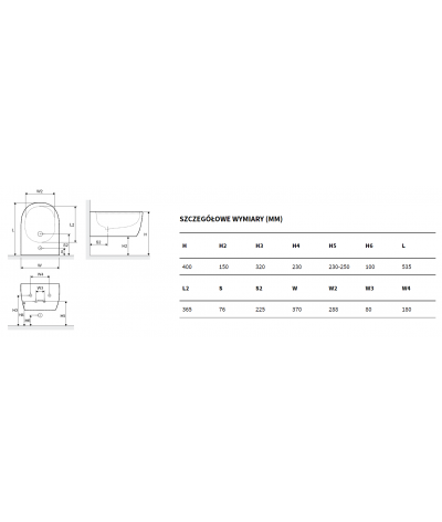 Bidet wiszący Doto marki Excellent o wymiarach 53,5 x 37 cm.