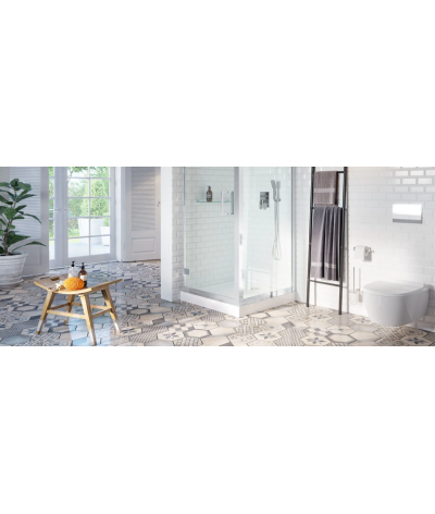 Wysoki próg (110 mm) wyraźnie zaznacza przestrzeń przeznaczoną do kąpieli i zabezpiecza podłogę przed zachlapaniem, co oszczędza sprzątania po długich, odprężających prysznicach.