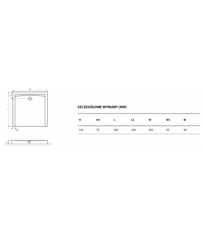 Brodzik kwadratowy wysoki Forma marki Excellent o wymiarach 80 x 80 cm.