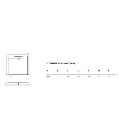 Brodzik kwadratowy wysoki Forma marki Excellent o wymiarach 90 x 90 cm.