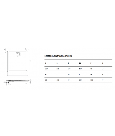 Brodzik kompozytowy kwadratowy Lavano EXCELLENT 90x90 cm