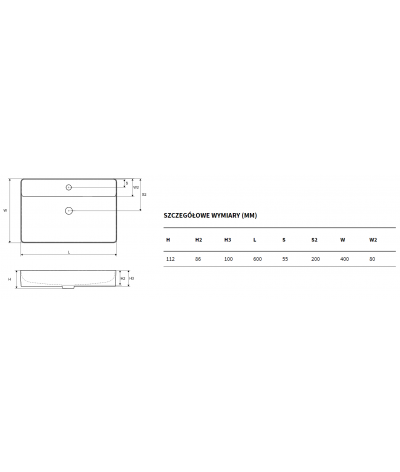 Umywalka nablatowa Rima 2.0 marki Excellent o wymiarach 60 x 40 cm.