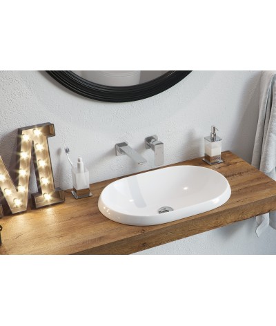 Lupio 60 - umywalka ceramiczna wpuszczana w blat bez przelewu, bez korka. Cienki rant.