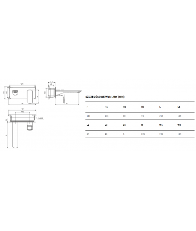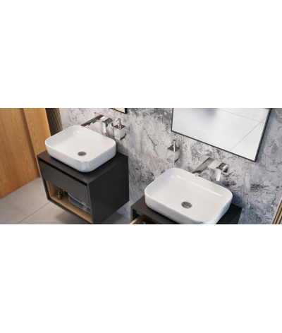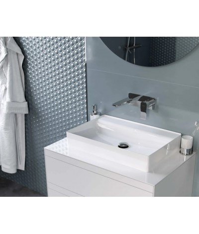 Bateria umywalkowa podtynkowa posiada wylewkę o zasięgu 196mm, może być instalowana na wymaganej wysokości nad umywalką. Dzięki temu z powodzeniem może być stosowana do umywalek nablatowych bez otworu na baterię. Posiada wbudowane: głowicę Kerox oraz perlator Neoperl Slim. Posiada rozdzielne delikatne rozety o wymiarach 60×60. Jej idealnym uzupełnieniem będą korki umywalkowo-bidetowe w kolorze chrom lub białym (dopasowanym do koloru ceramiki).