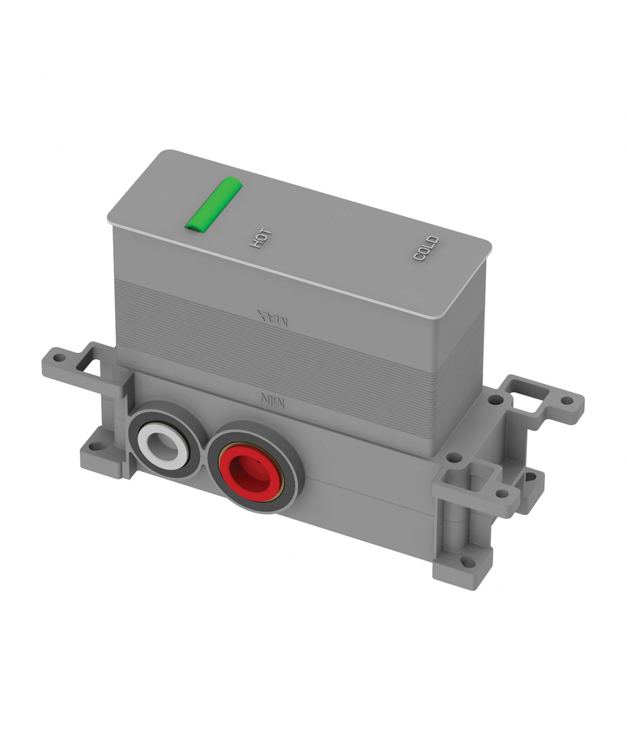 Element podtynkowy 2-wyjściowy został wyposażony w mosiężny korpus, wysokiej jakości głowicę termostatyczną, przełącznik oraz zawory z filtrami. Jego zaletą jest łatwy montaż oraz minimalna głębokość zabudowy, która wynosi zaledwie 7cm.