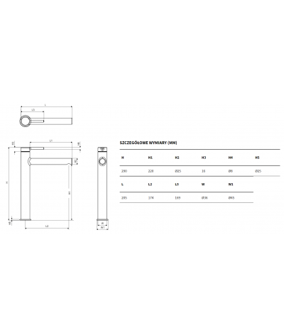 Bateria umywalkowa wysoka posiada wylewkę o zasięgu 189mm i wysokości 246mm. Dzięki temu z powodzeniem może być stosowana do umywalek nablatowych bez otworu na baterię. Korpus umywalki wykonany jest z jednego odlewu. Posiada wbudowane: głowicę Kerox oraz perlator Neoperl Slim. Jej idealnym uzupełnieniem będą korki umywalkowo-bidetowe w kolorze czarnym lub białym (dopasowanym do koloru ceramiki).